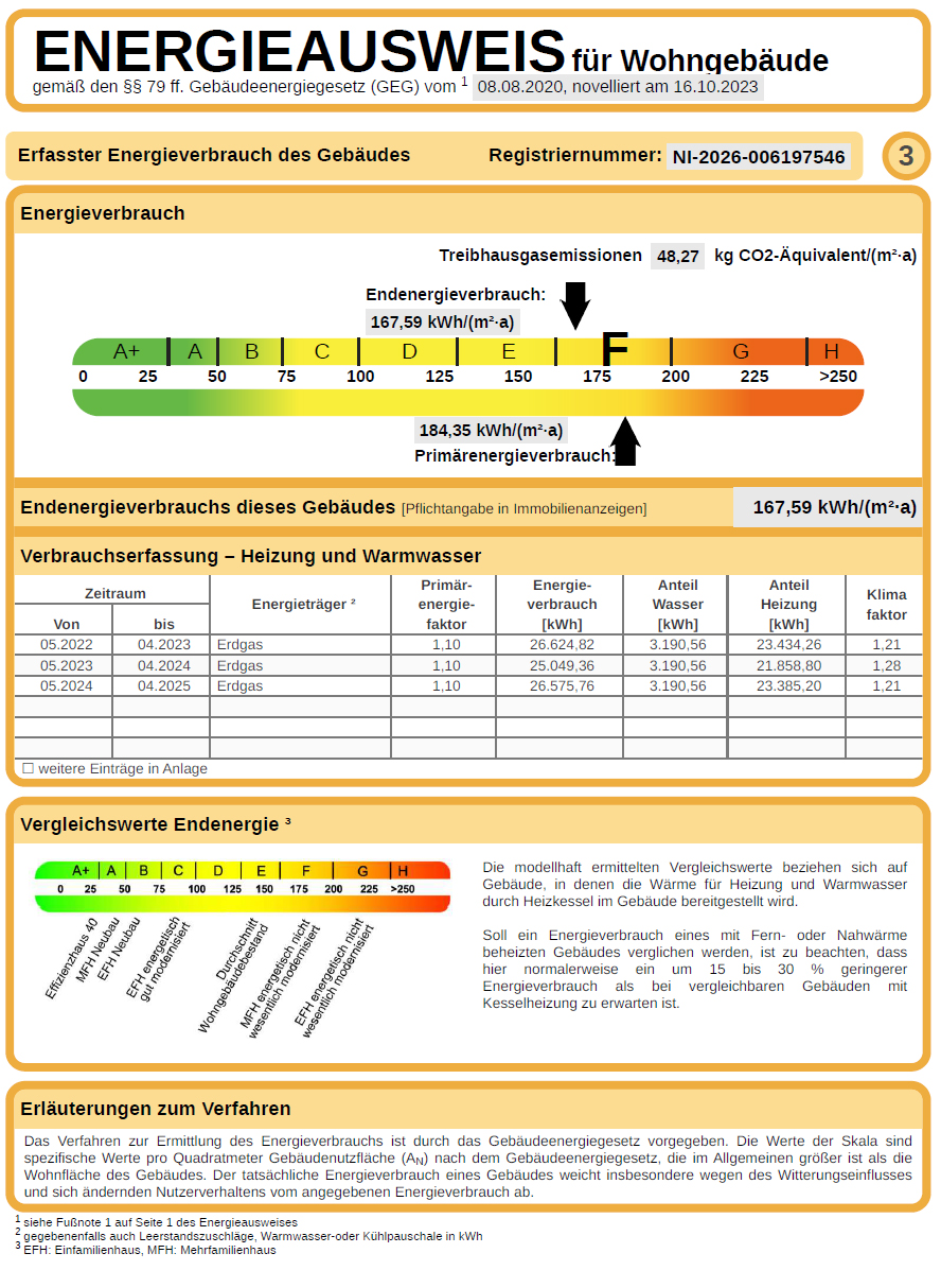 Endenergiebedarf: 167,95 kWh(m² a)
