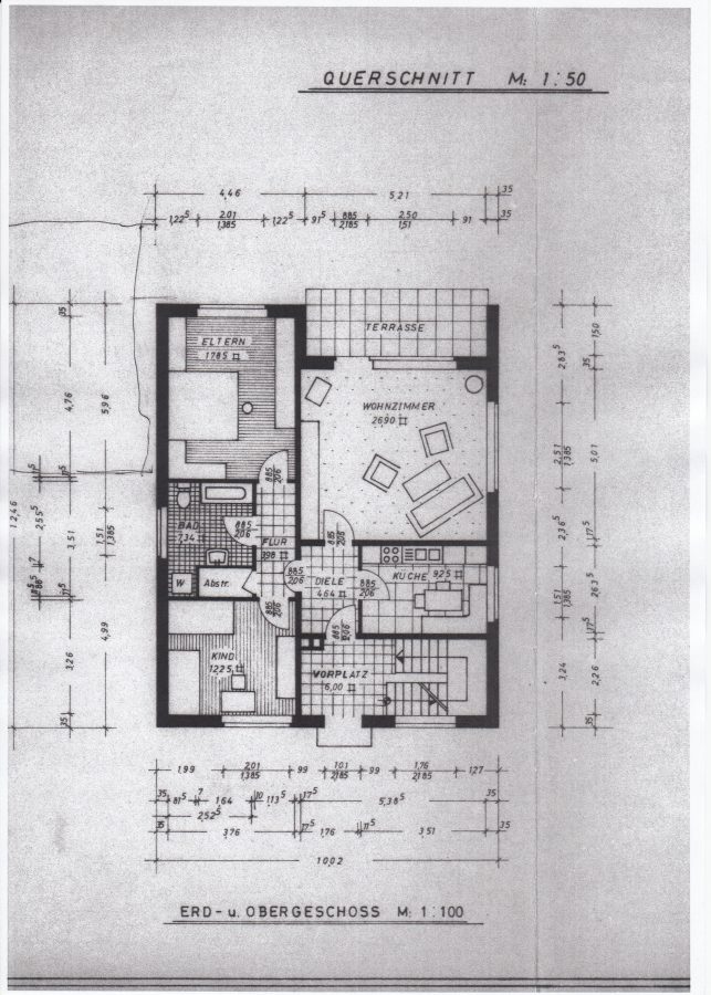 Wohnzimmer, Elternschlafzimmer, Kinderzimmer, Badezimmer, Küche, 2 Flure, Terrasse