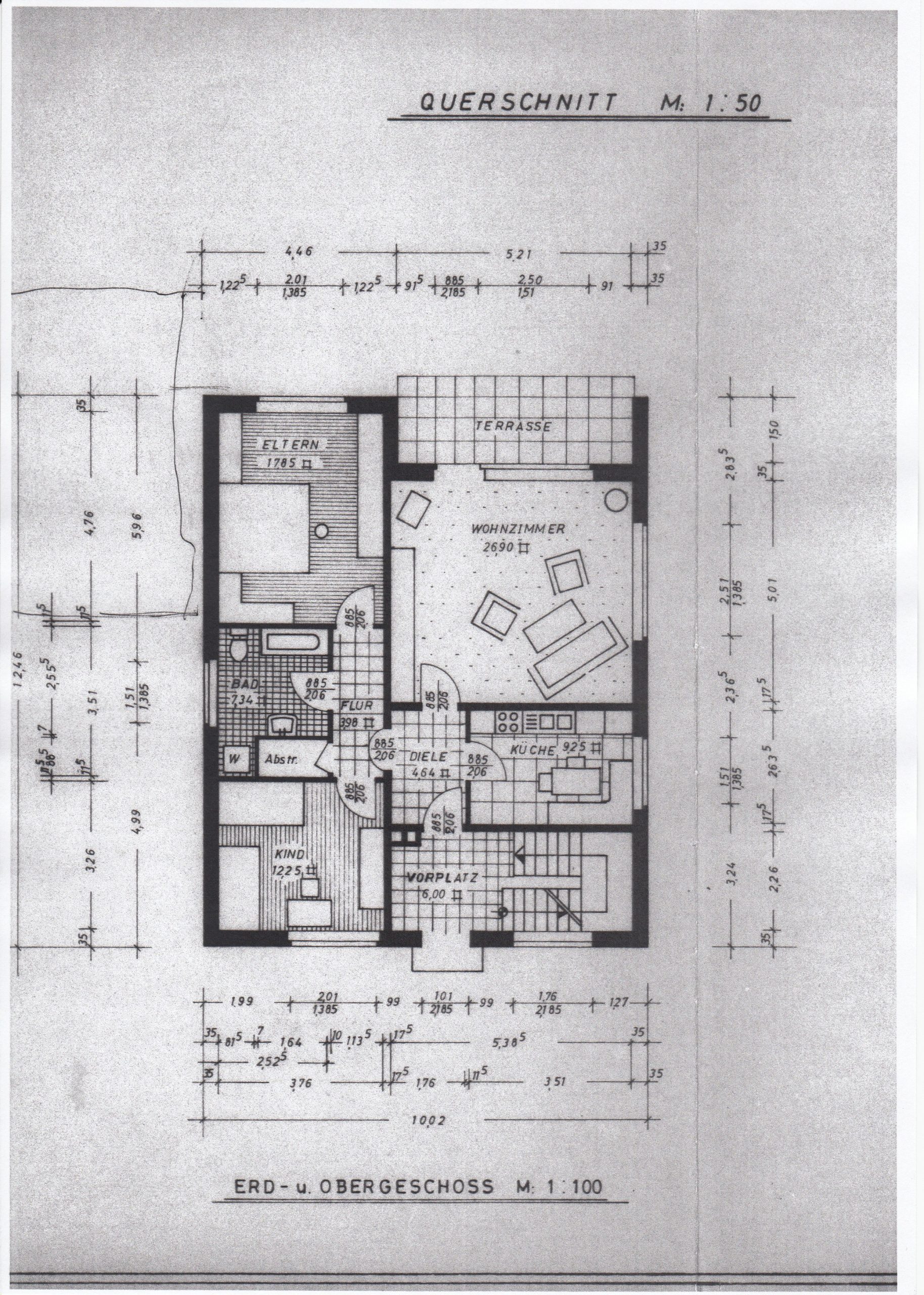 Wohnzimmer, Elternschlafzimmer, Kinderzimmer, Badezimmer, Küche, 2 Flure, Terrasse